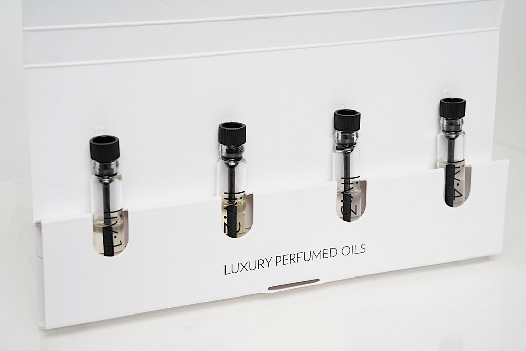 This discovery set of our Liv perfumed oils, includes all four scents in a 1ml vial. Test each scent before you buy a full bottle.
